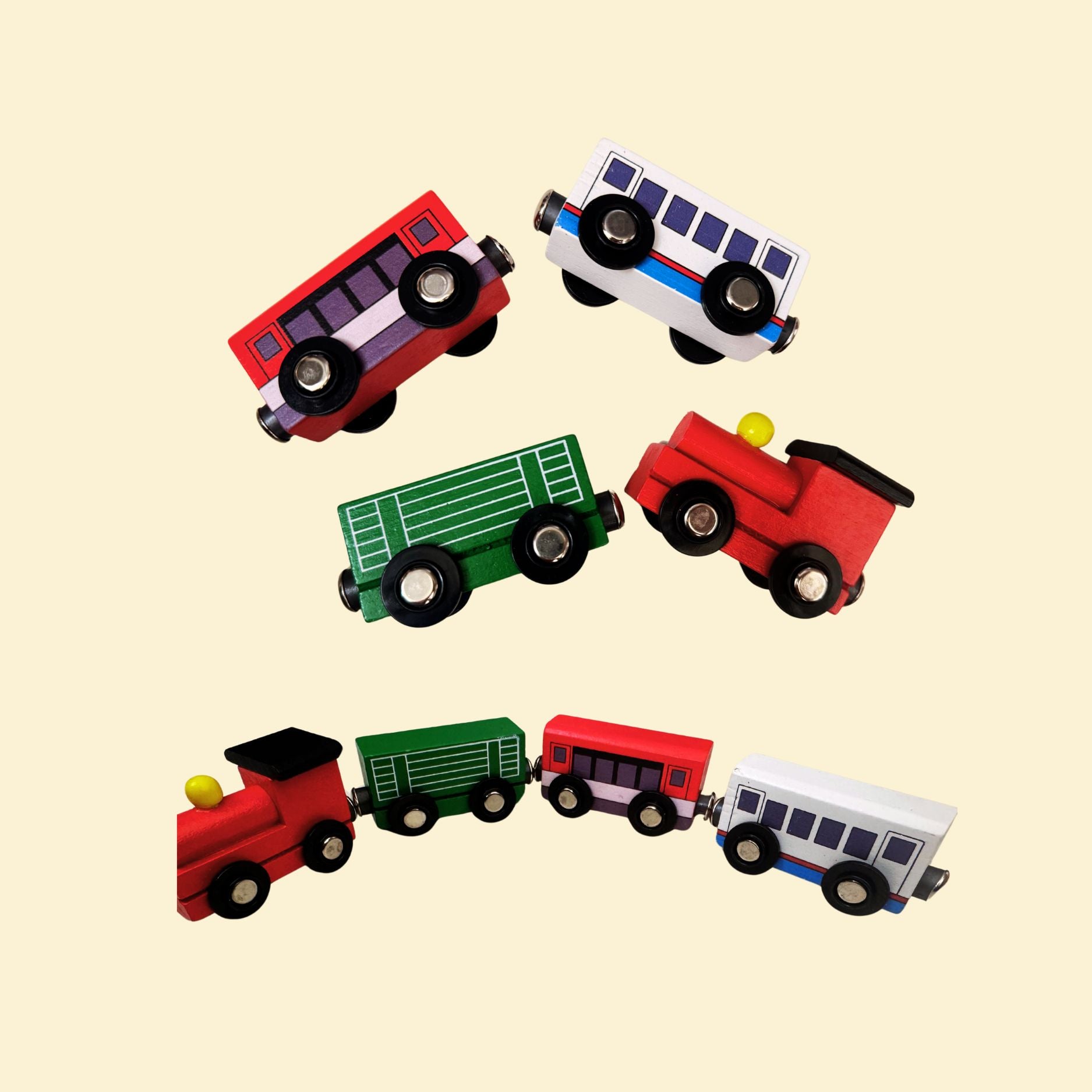 koo koo.! Stack, attach, and have fun with our Magnetic Train. Its magnets make it easy to connect cars and create your own unique train. Perfect for imaginative play and endless possibilities. All aboard!