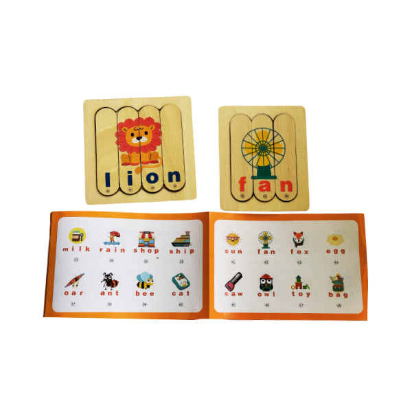Introducing Word Wodden Puzzle, the perfect game for word and puzzle enthusiasts! With 2 sets of boards, you can choose between 3 and 4 strips to match words and pictures. Use the accompanying booklet to challenge yourself with various puzzles. Get ready to have some fun!